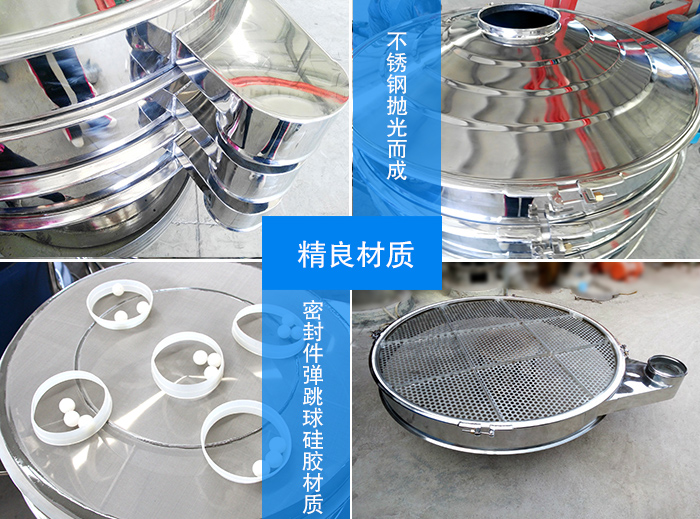304不銹鋼拋光而成,彈簧外圍加不銹鋼防護(hù)罩,密封件及彈跳球均采用醫(yī)藥行業(yè)硅膠材質(zhì),所以材料的選擇都是嚴(yán)格按照標(biāo)準(zhǔn)來走的,大漢廠家的不銹鋼旋振篩有12個月的超長質(zhì)量保證,期間出現(xiàn)非人為因素的故障,廠家可以包退換。