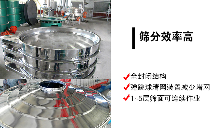 旋振篩采用全封閉結構,可保證中西藥顆粒篩分過程中無粉塵溢散等情況發(fā)生,另外,旋振篩篩網(wǎng)下裝有彈跳球,可以對篩網(wǎng)進行清潔,有效解決篩網(wǎng)堵孔,進而提高了篩分效率,1~5層篩面,雜質或粗料會自動排出,可連續(xù)作業(yè),篩分更高效。