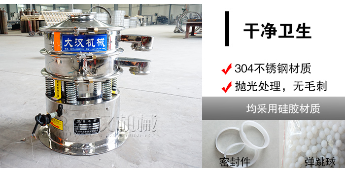 中西藥顆粒屬于醫(yī)藥行業(yè),對于衛(wèi)生要求十分嚴格,大漢旋振篩精選304不銹鋼材質,密封件和彈跳球清網(wǎng)裝置均采用硅膠材質,另外篩機內外經(jīng)過拋光處理,無毛刺現(xiàn)象,符合醫(yī)藥衛(wèi)生標準。