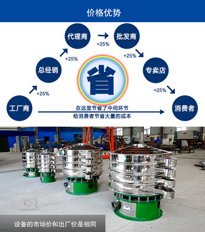 在保證設(shè)備質(zhì)量的前提下,多層旋振篩價(jià)格也是比較經(jīng)濟(jì)實(shí)惠的,為了用戶加工廠整體的效益能夠達(dá)到更大化,我們都是采用較低的價(jià)格來銷售設(shè)備的,設(shè)備的市場價(jià)和出廠價(jià)是相同的,具體價(jià)格請點(diǎn)擊在線咨詢獲取。