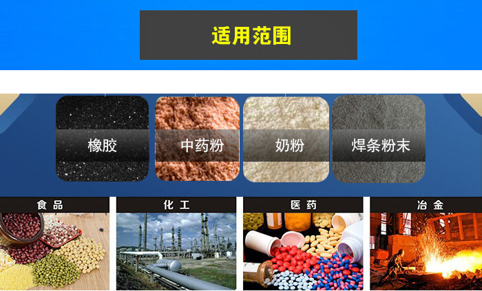 旋振篩廣泛應(yīng)用于食品、化工、醫(yī)藥、冶金等行業(yè),顆粒、粉末、粘液一定范圍內(nèi)均可篩選, 如:米粉、奶粉、豆?jié){、油漆、純堿、檸檬粉、橡膠、塑料、中藥粉、電磁材料、金屬粉末、焊條粉末、石英砂等。
