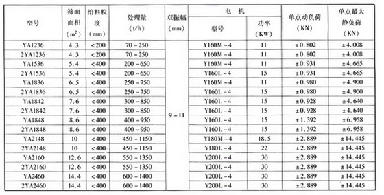 YA系列圓振動篩的主要技術(shù)參數(shù):