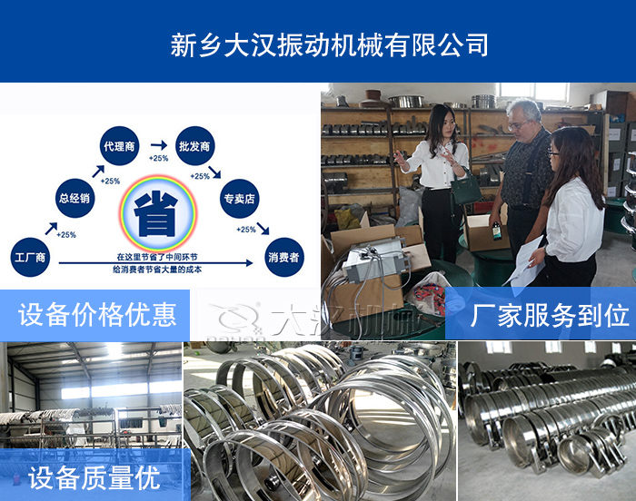 關(guān)于設(shè)備價(jià)格:廠家從用戶角度出發(fā),遵從大多數(shù)用戶的購買心理,單臺(tái)設(shè)備利潤(rùn)少,價(jià)格更平民化、經(jīng)濟(jì)化,大漢料倉旋振篩廠家直銷,價(jià)格更便宜。